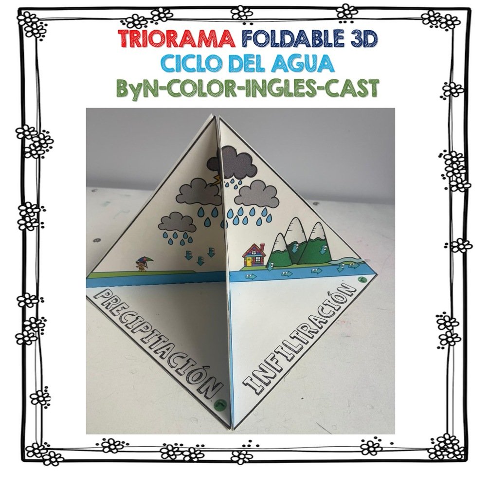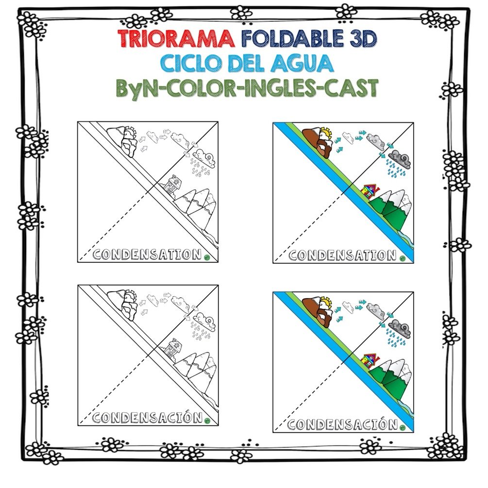 TRIORAMA FOLDABLE 3D CICLO DEL AGUA BYN (COLOREAR) Y EN INGLES