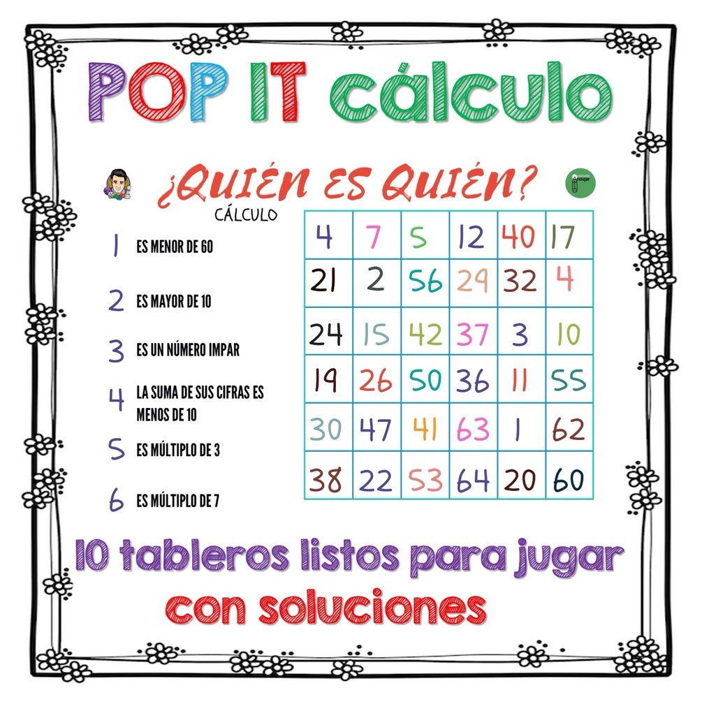 Pop it y manipulativo ¿Quién es quien? especial cálculo + PLANTILLA