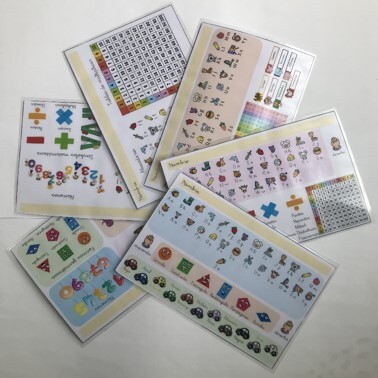 32 apoyos visuales diseñados por nuestro equipo con diferentes conceptos variados de diferentes áreas para poner en la mesa o tener en forma de llavero.